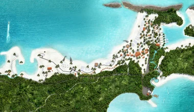 Súkromné ostrovy a pláže lodných spoločnostíSúkromné ostrovy a pláže plavebných spoločností v Karibiku, Francúzskej Polynézii, v Arabskom mori ..
