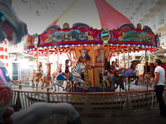 - Klasický ručne robený kolotoč na Boardwalk Arcade