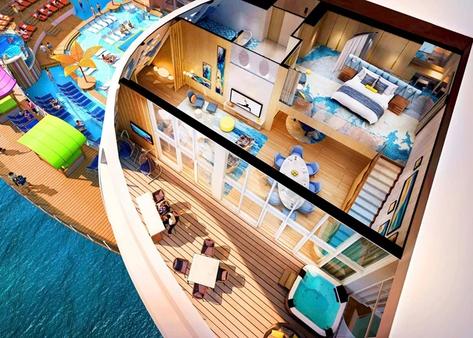 RL - Royal Loft Suite 141 m² + balkón s vírivkou 78 m². 2-podlažný apartmán. 18. paluba. Max 6 osôb. Výhody Royal Suite Star Class. 16 684 € 4 171 € za osobu