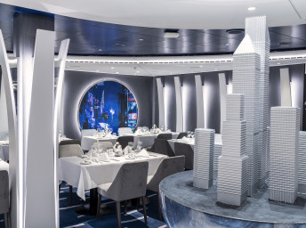 Svojim dizajnom vzdáva hold mestu New York; destinácie predstavujúce ducha objavovania a kultúrnych zážitkov. Dizajnové prvky, verejné priestory a mená sú preto inšpirované metropolou v USA. Patrí medzi ne impozantný tri metre vysoká replika Sochy slobody v srdci kasína a novo navrhnuté hlavné nákupné a zábavné časť lode s príhodným názvom Times Square. Jej hlavným rysom je impozantný 8,5 metrová LED kupoly, ktorá sa rozprestiera na štyroch palubách, s projekciou ikonického panorámu tohto neustále sa meniaceho manhattanského námestí.
