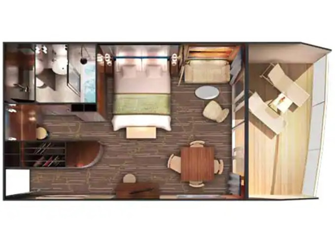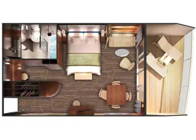 | SN - Aft-facing Penthouse Suite 32-34 m² / balkón 5-7 m². 8,9. paluba - vzadu. Max 3 osoby. Výhody Suite. | 2 584 € 1 292 € za osobu | ||