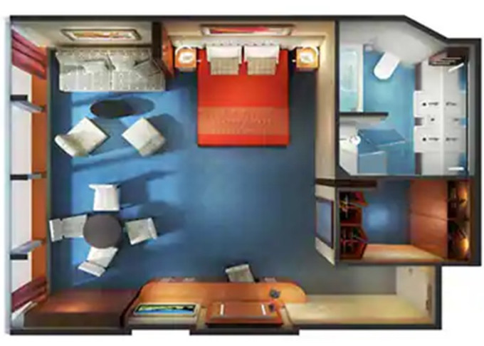 | S4 - Deluxe Family Suite 53 m² / balkón 7 m². 11. paluba - vpredu, stred. Max 6 osôb. Výhody Suite. | 3 780 € 1 890 € za osobu | ||