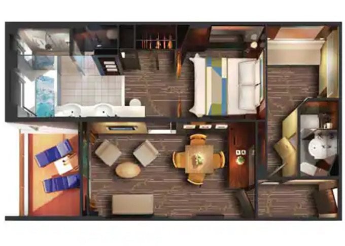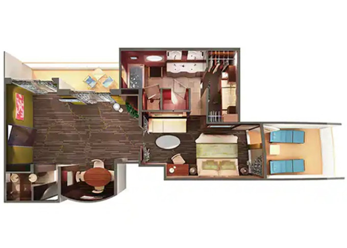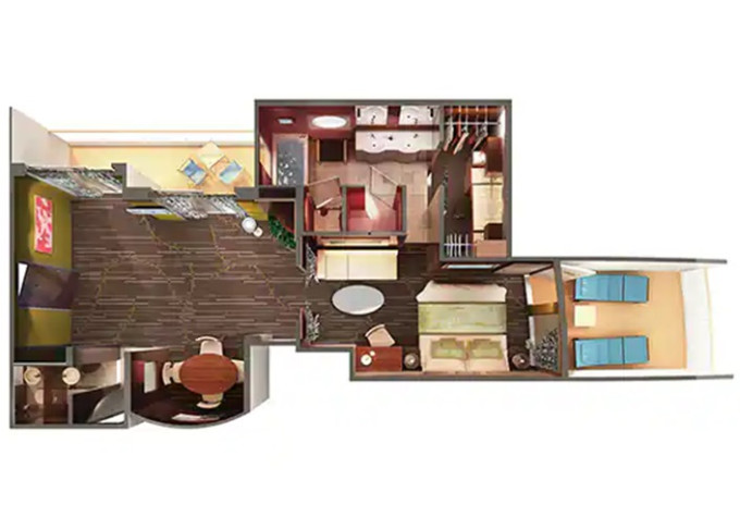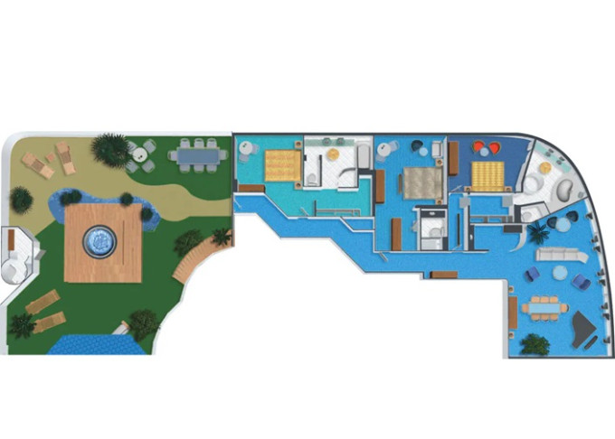 | S1 - Garden Villa - 3 spálne 621 m² / balkón 414 m². Vírivka. 14. paluba - stred. Max 7 osôb. Výhody Suite. | 15 350 € 7 675 € za osobu | ||