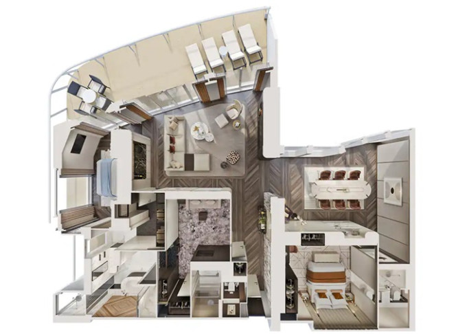 | H2 - The Haven Deluxe Owner's Suite 197 m² / balkón 45 m². 18. paluba vpredu. Max 6 osôb. Výhody The Haven. | 7 512 € 3 756 € za osobu | ||