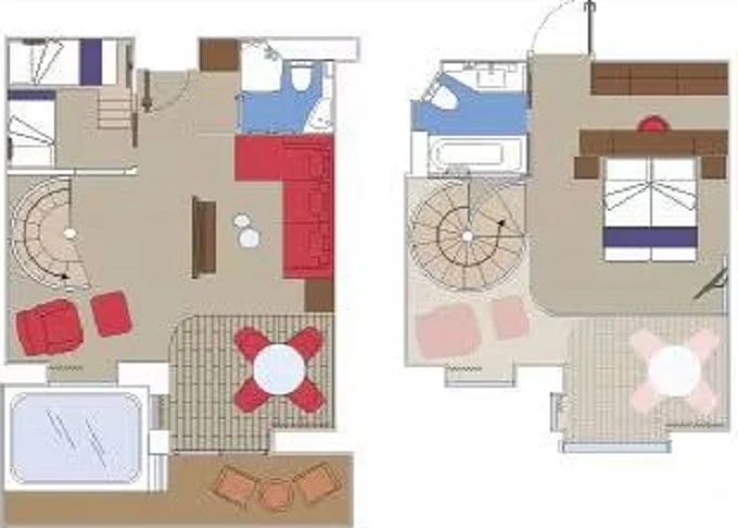 | YJD - Yacht Club Duplex Suite s vírivkou 46 m² + balkón 30 m². Vírivka. 2 podlažia, šatník, 2 kúpeľne (1 s vaňou). Max 4 osoby. 16. paluba. Cenový model MSC Yacht Club. | 8 242 € 4 121 € za osobu | ||