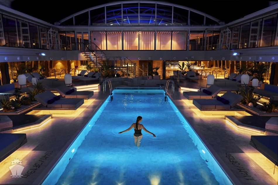 Ocean Premier Penthouse Penthouse 42 m² + terasa 10 m², Suita 42 m² + terasa so sedením a pohovkou alebo kreslami 10 m². Oddelená spálňa, obývacia a jedálenská časť, šatník. Minibar, kávovar, vodná kanvica, ďalekohľad, sejf, kúpeľňa so sprchou. Taška Technogym Case Kit. Fľaša šampanského na privítanie. Maximálna kapacita 3 osoby. 32 180 € 8 045 € za osobu
