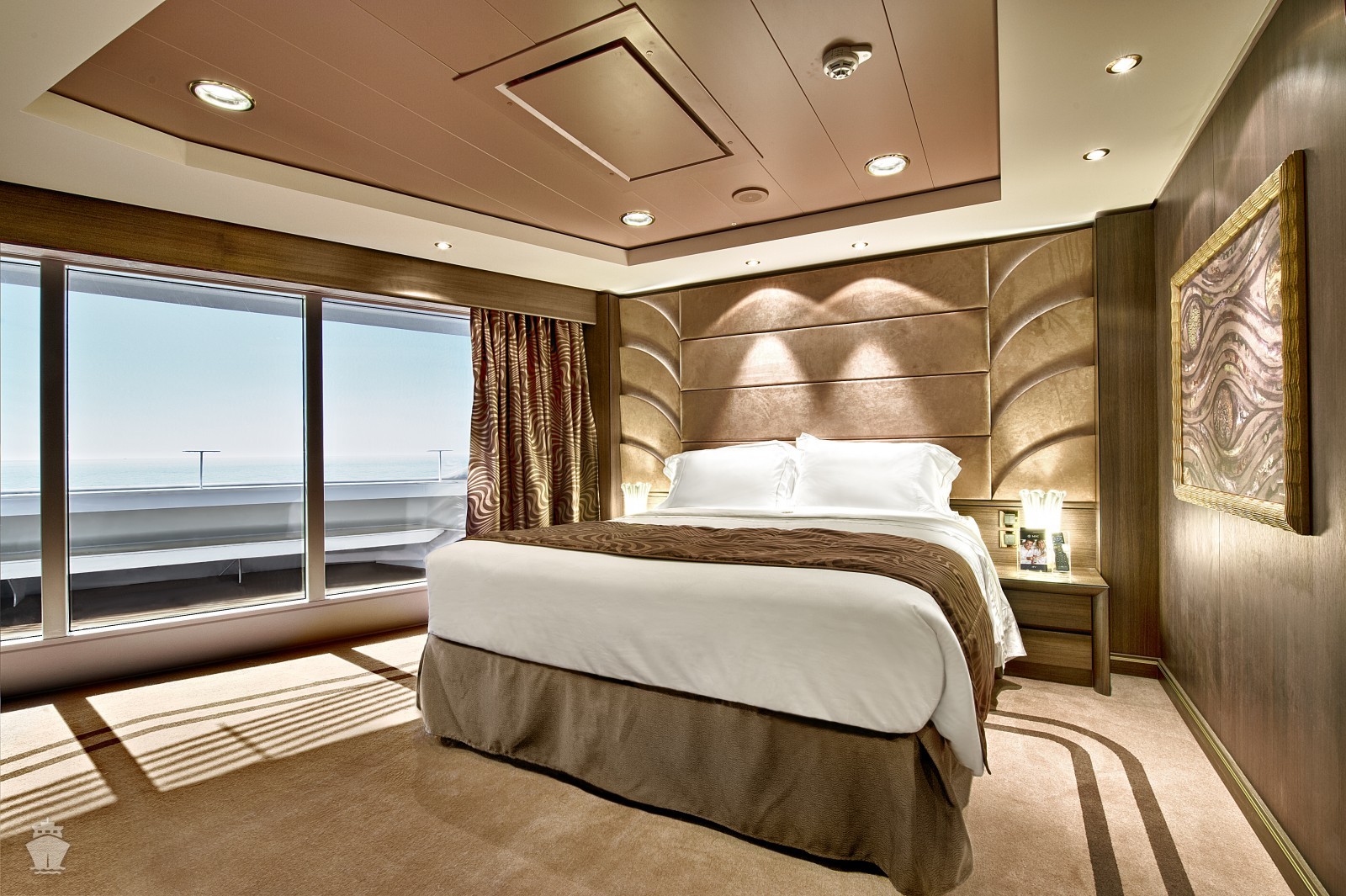 Suite s balkónom/panoramatickým oknom: 21-47m², kajuta s manželskou posteľou (na požiadanie 2 oddelené postele) a rozkladacia pohovka. Klimatizácia, kúpeľňa s vaňou, toaletný stolík, priestranná skriňa, interaktívna TV, telefón, minibar, sejf, sušič na vlasy. Balkón so stolíkom a stoličkami/panoramatické okno. Internetové pripojenie (za poplatok).