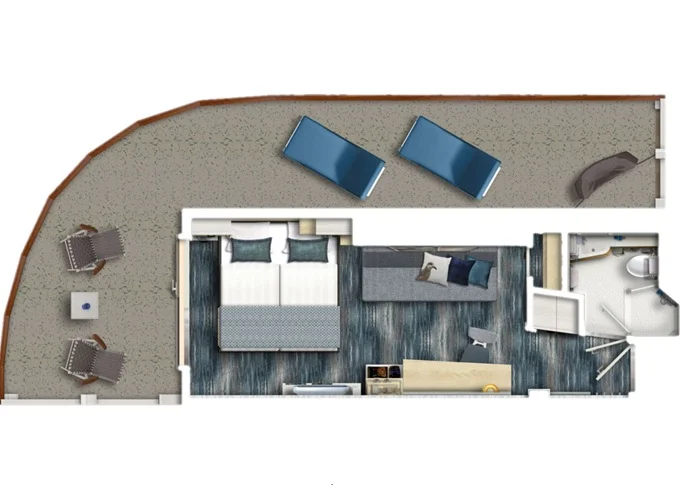 | JBAO - Junior Suite s balkónom 26 m² + balkón 8 m² so stolom. 10. paluba. Max 4 osoby. Výhody Junior Suite. | 2 398 € 2 398 € za osobu |