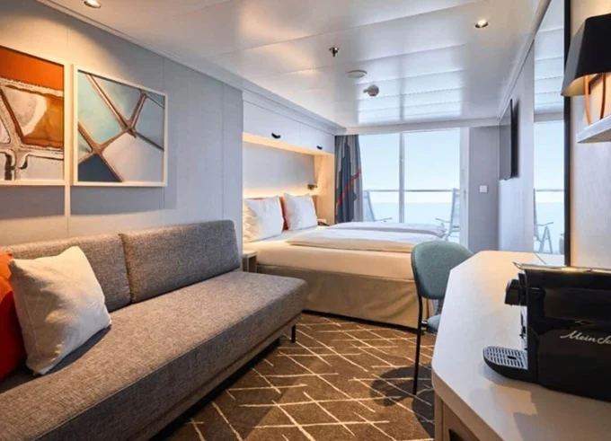 | SKAO - Schöne Aussicht Suite 39 m² + balkón 10-12 m² s ležadlami a hojdacou sieťou. 7-14. paluba. Max 4 osoby. Výhody Suite. | 7 047 € 2 349 € za osobu |